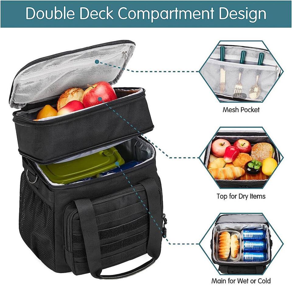 Sac isotherme réutilisable personnalisé en Oxford noir, sac isotherme pour épicerie, sac isotherme tactique pour le déjeuner, pour les aliments