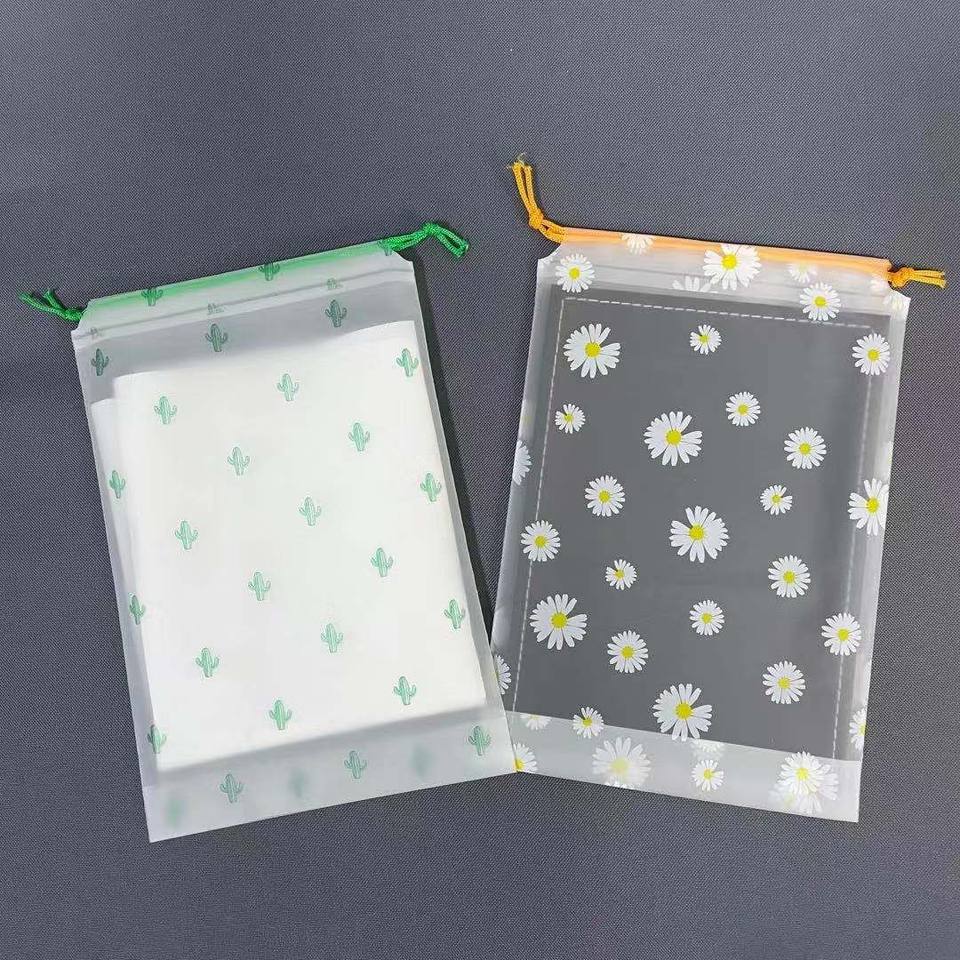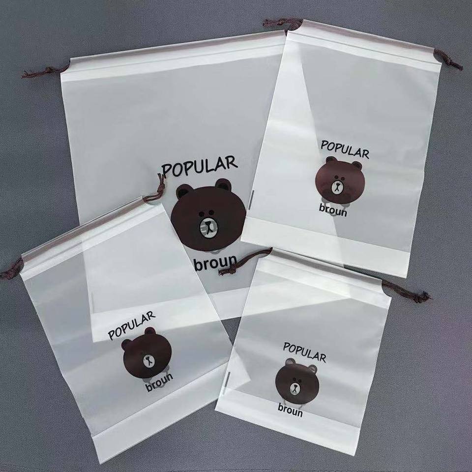 Sac personnalisé réutilisable en tissu givré motif ourson et marguerite, avec emballage anti-poussière, sac à cordon, sac de rangement transparent, sac à chaussures