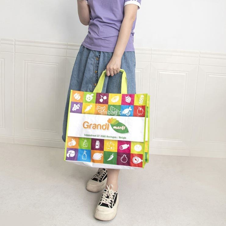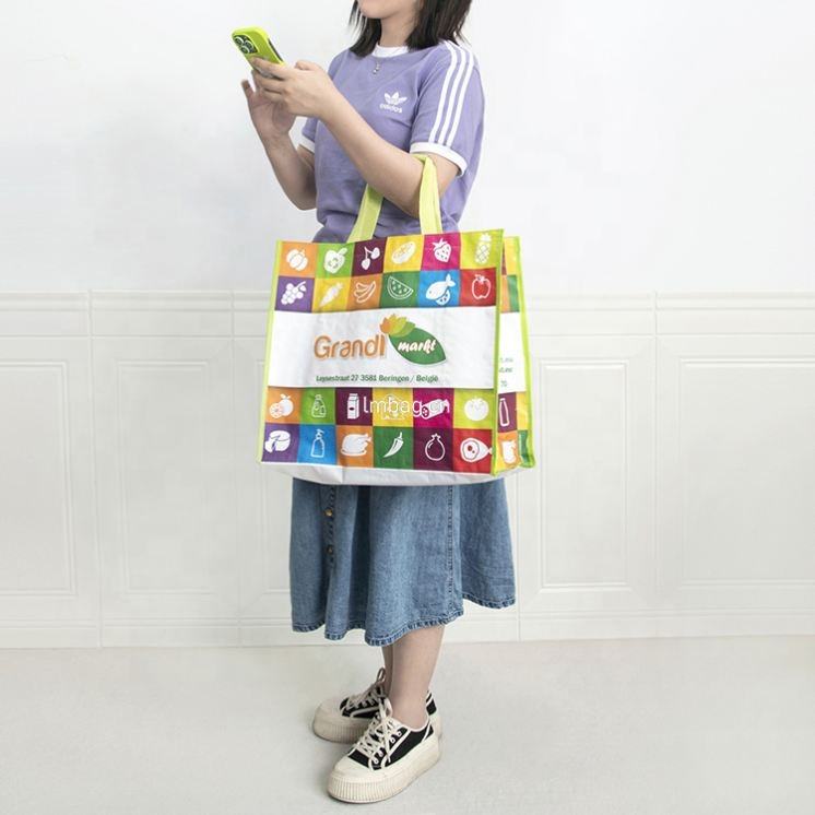 Sac fourre-tout laminé réutilisable personnalisé PP polypropylène tissé avec poignée en coton sac de shopper personnalisé motif lettre