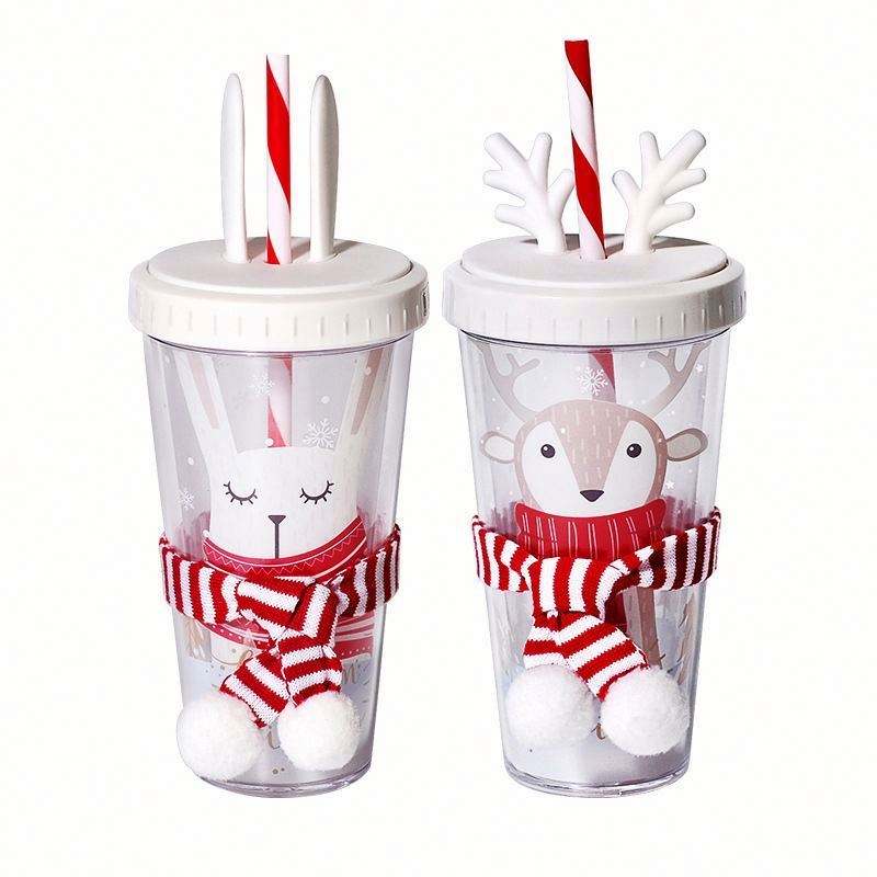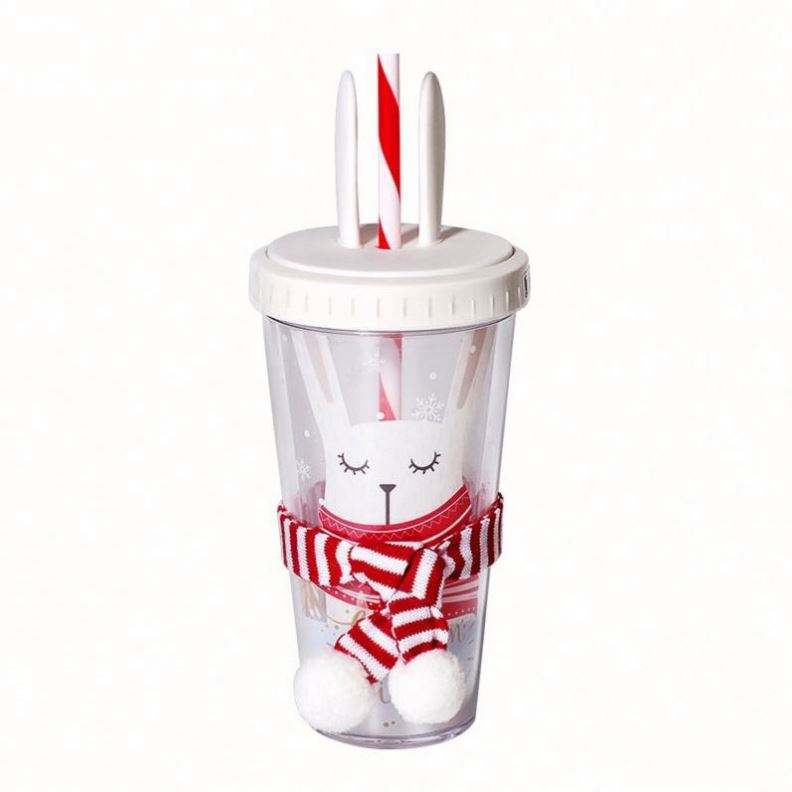 Gobelet réutilisable personnalisé avec couvercle, motif lapin/élan - Tasse de voyage pour enfants et adultes, cadeau de Noël idéal