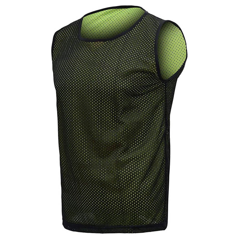 Bavoir d'entraînement réversible et respirant personnalisé | Maille de protection noire et verte néon | Gilet d'entraînement double couche à séchage rapide avec logo personnalisé
