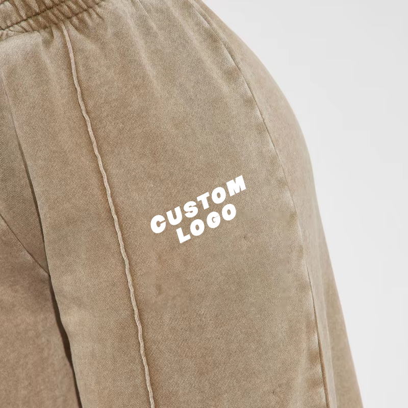 Strass personnalisé lavé à l'acide en détresse évasé couches pantalons de survêtement coton lâche délavé Jogging pantalons de survêtement, pantalons pour hommes