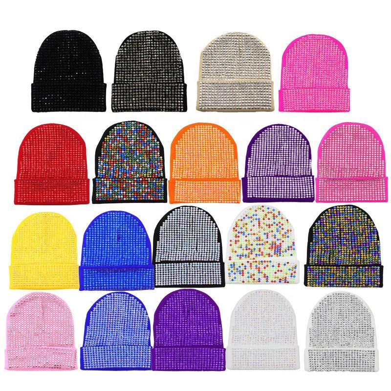 Bonnet personnalisé en strass pour hommes et femmes, bonnet d'hiver en tricot scintillant avec cristaux, casquette tendance, faible MOQ, fournisseur OEM en gros