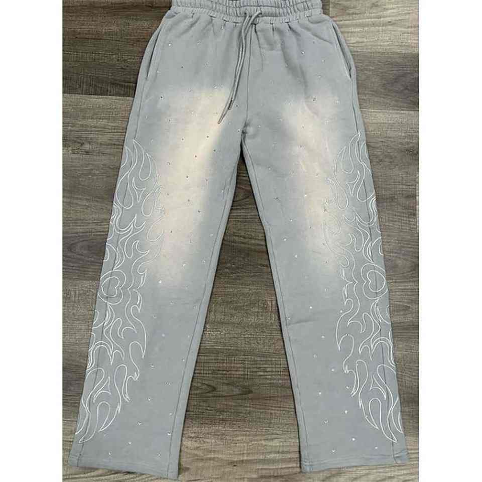 Pantalon décontracté pour homme, taille mi-haute, imprimé numérique avec strass, délavé à l'acide, imperméable, coupe large, sport, jogging, coupe régulière