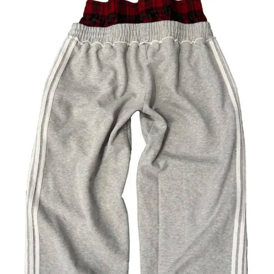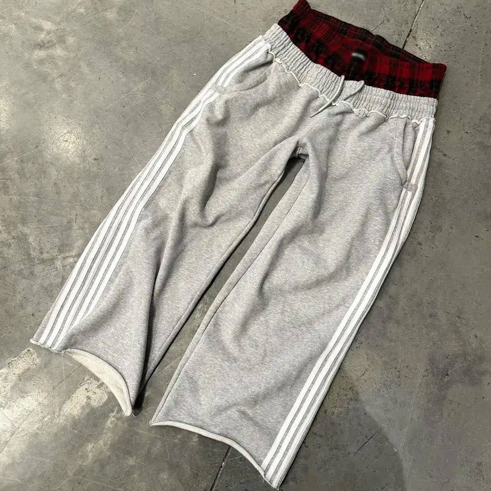 Pantalon de survêtement baggy à double taille personnalisé avec strass pour homme, style streetwear