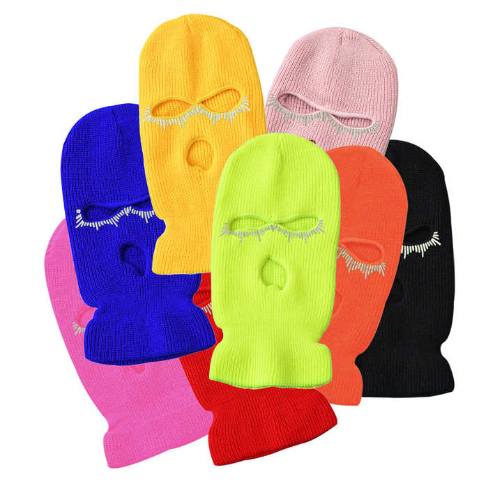 Personnalisé Strass visage Gini masque chapeau d'hiver Trois trou broderie Tricoté ski masque laine tricoté balaclava plein visage masque de ski