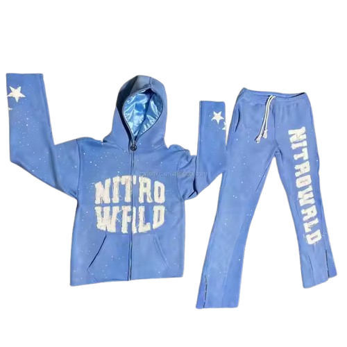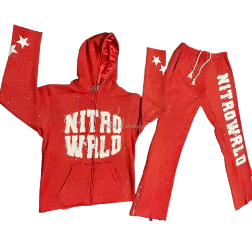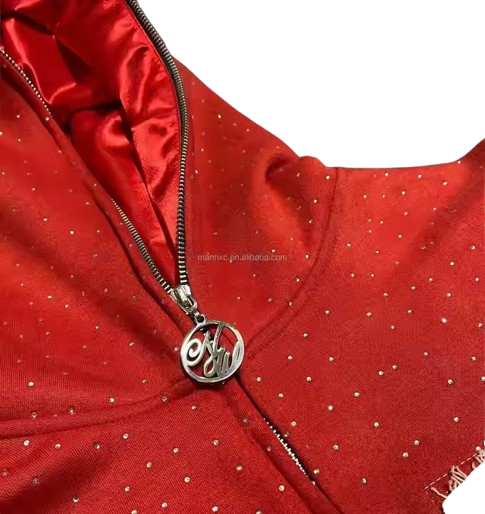 Sweat à capuche zippé intégral personnalisé avec strass, patch brodé effet vieilli, 100% coton, coupe oversize, respirant, séchage rapide, pour l'automne