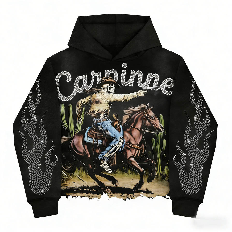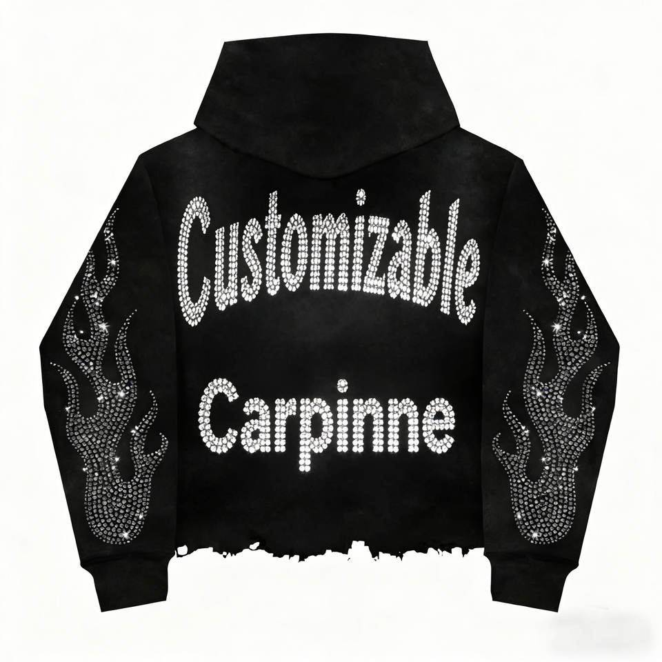Sweat à capuche personnalisé avec strass, impression DTG, 100% coton, entièrement zippé, coupe courte, ourlet brut, impression sérigraphique, en molleton bouclette