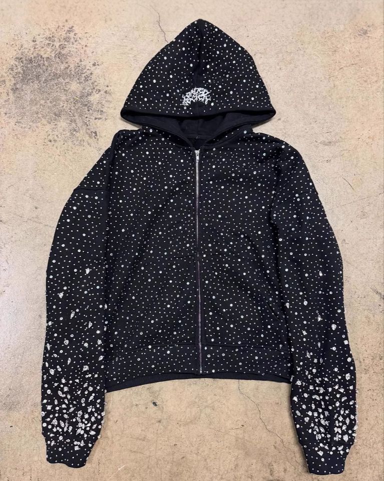 Custom Rhinestone Hoodie Shiny Thick Cotton Drop Shoulder for Men Teens Boys and Girls Sheisty Design Makers