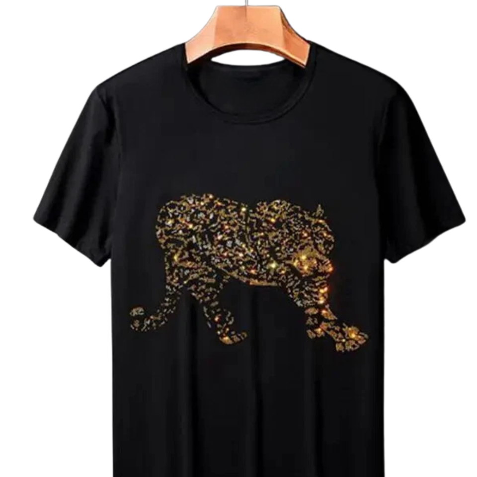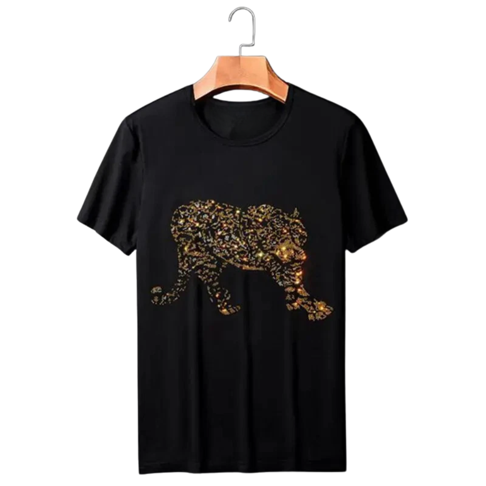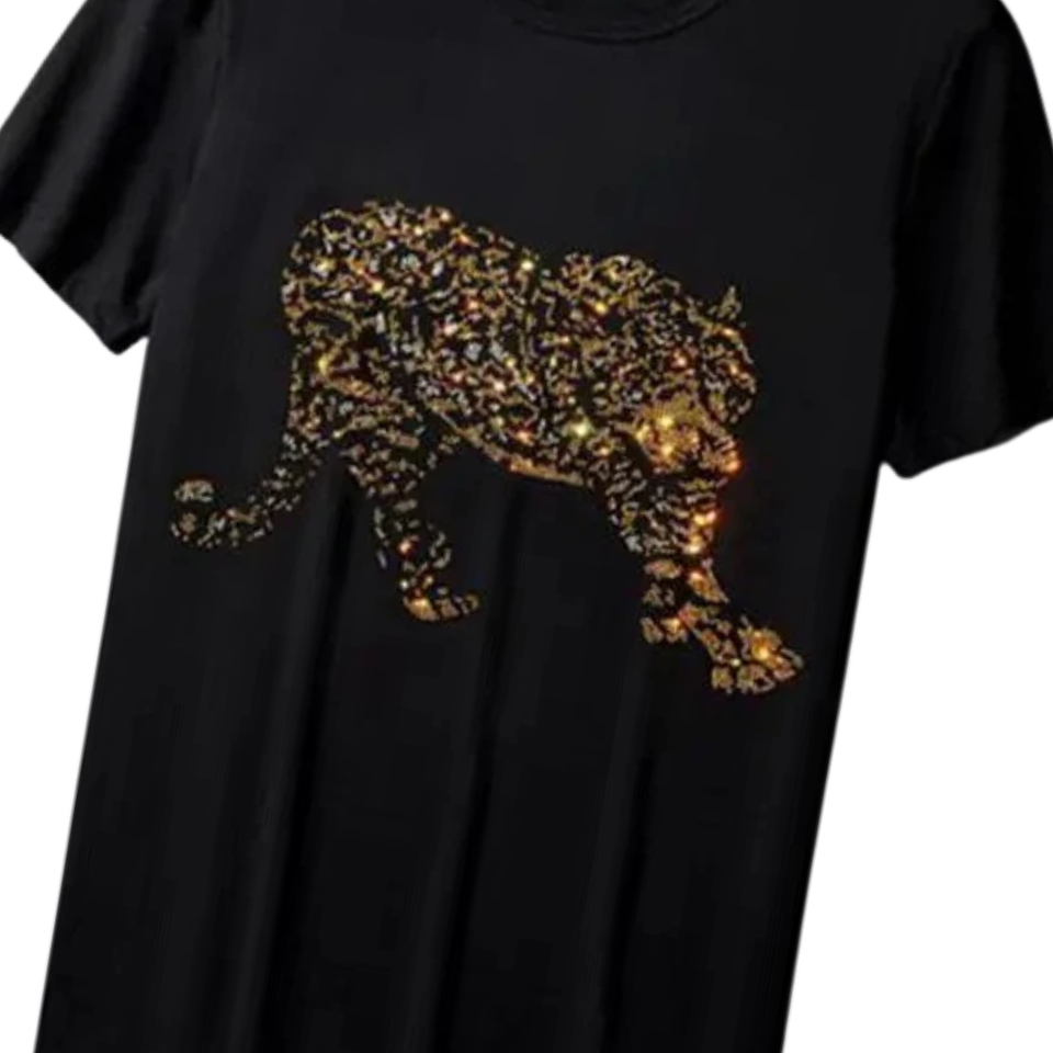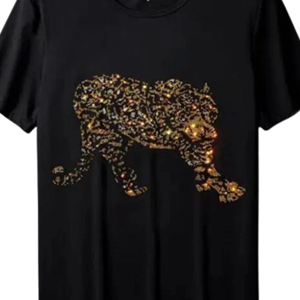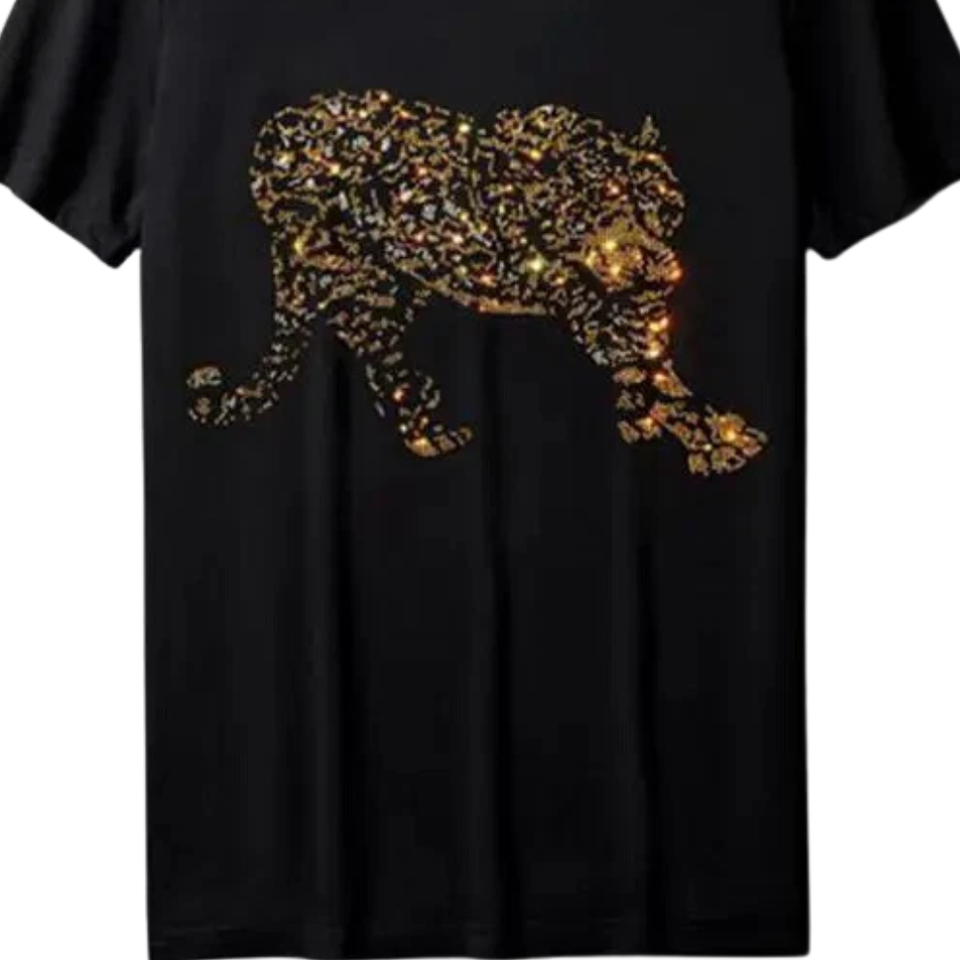 T-shirt personnalisé en strass léopard, tee-shirt graphique animal scintillant, streetwear unisexe, mode, vente en gros, OEM, marque privée, haute qualité