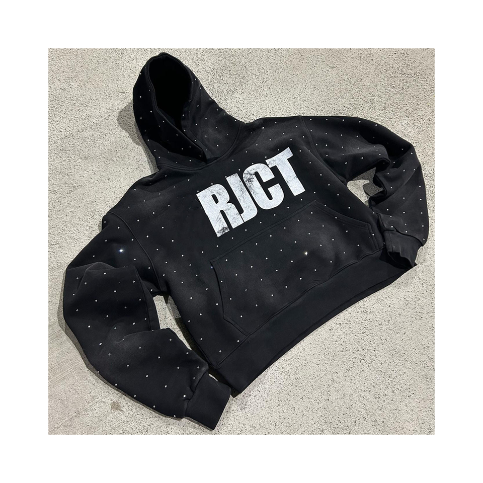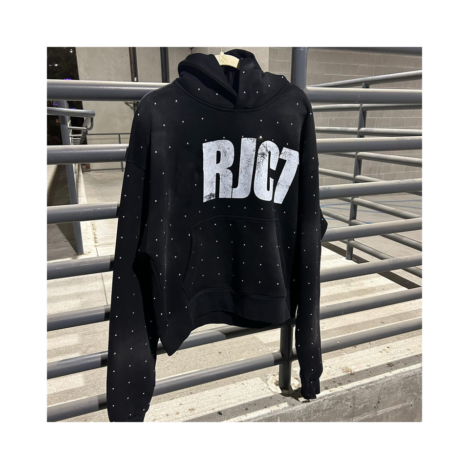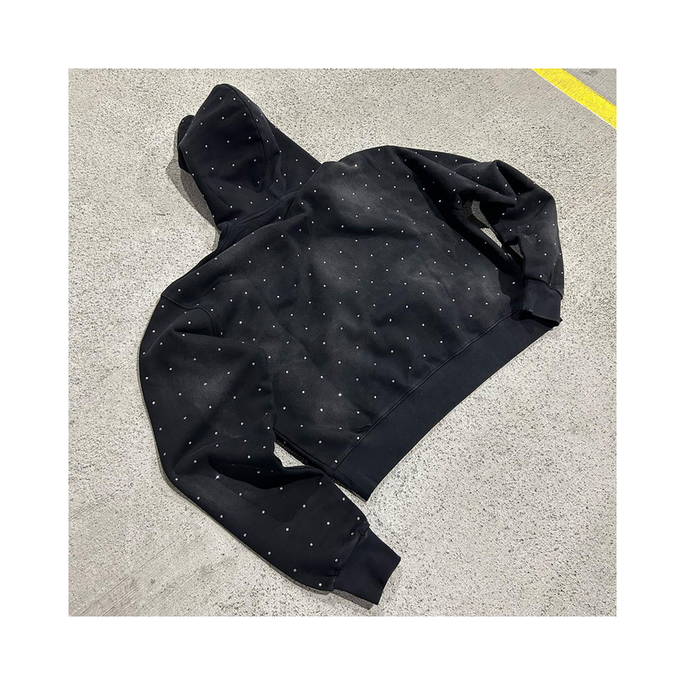 Logo en strass personnalisé lavage à l'acide vintage thermique Streetwear pull bouffant impression français éponge soleil fané sweats à capuche en strass