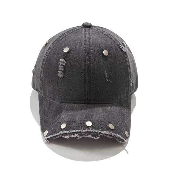 Casquettes de baseball en coton délavé pour hommes, personnalisées avec strass, à visière courbée, ajustées, style hip-hop, effet vieilli et déchiré, avec détails métalliques