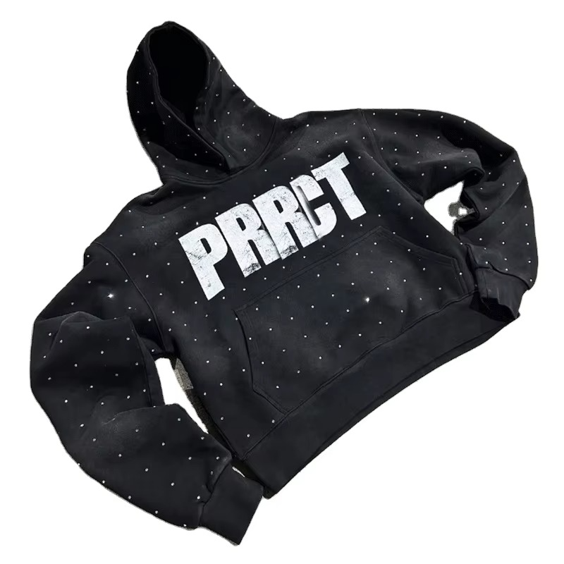 Strass personnalisé sérigraphie Logo éponge française surdimensionné coton lourd lavage à l'acide soleil fané hommes sweats à capuche Vintage survêtements