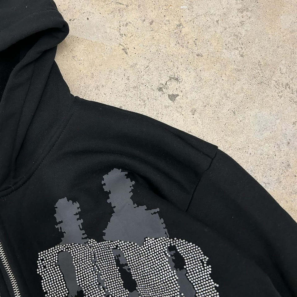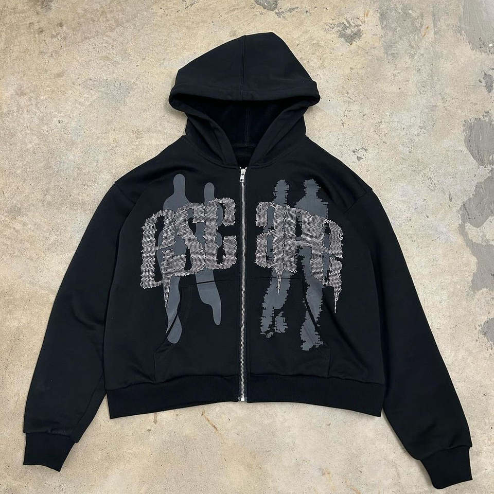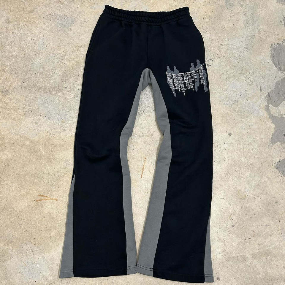 Survêtement personnalisé avec strass Survêtement 2 pièces pour hommes Pantalon de survêtement évasé à contraste de couleurs Ensemble sweat à capuche zippé et jogging pour hommes