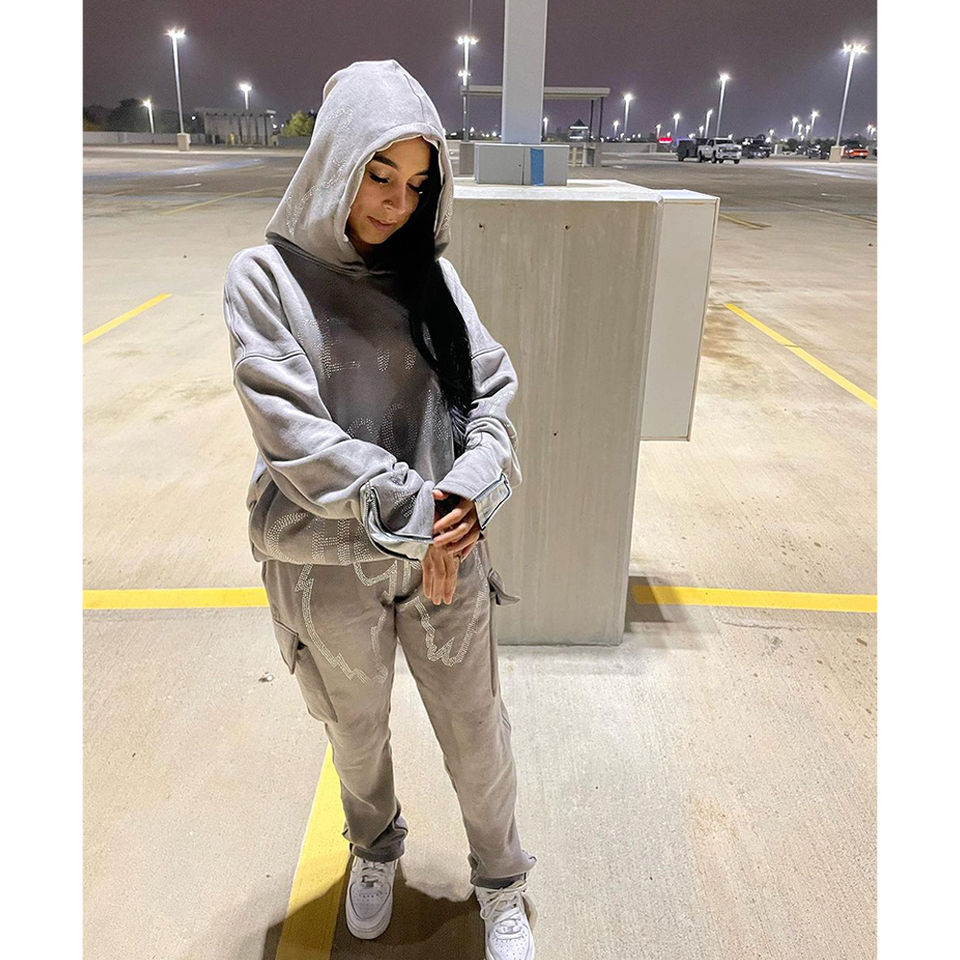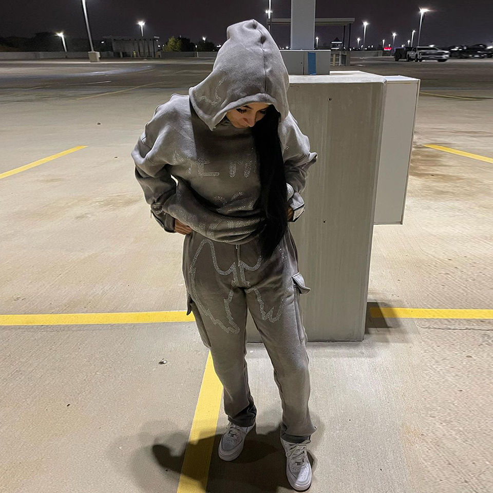 Ensemble survêtement avec strass personnalisé Sweats à capuche et sweats surdimensionnés Streetwear Ensemble survêtement pour femmes