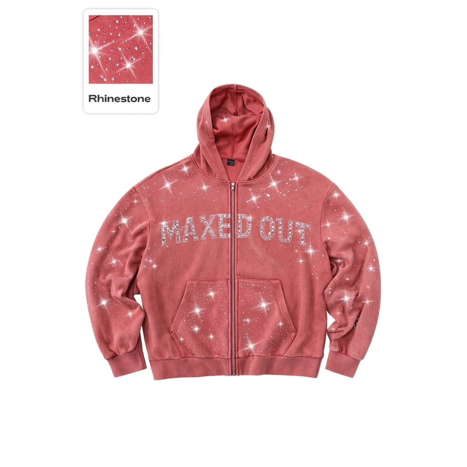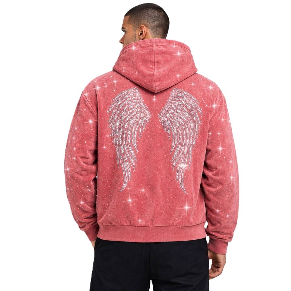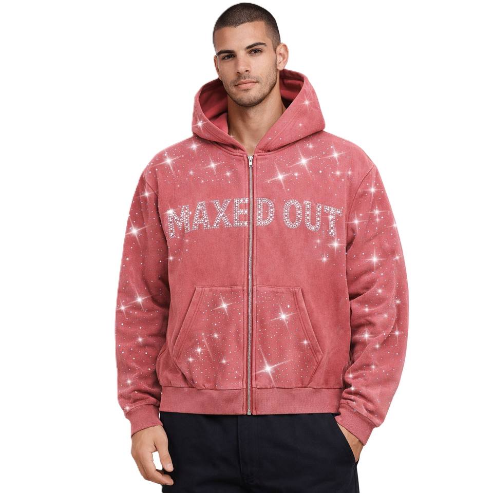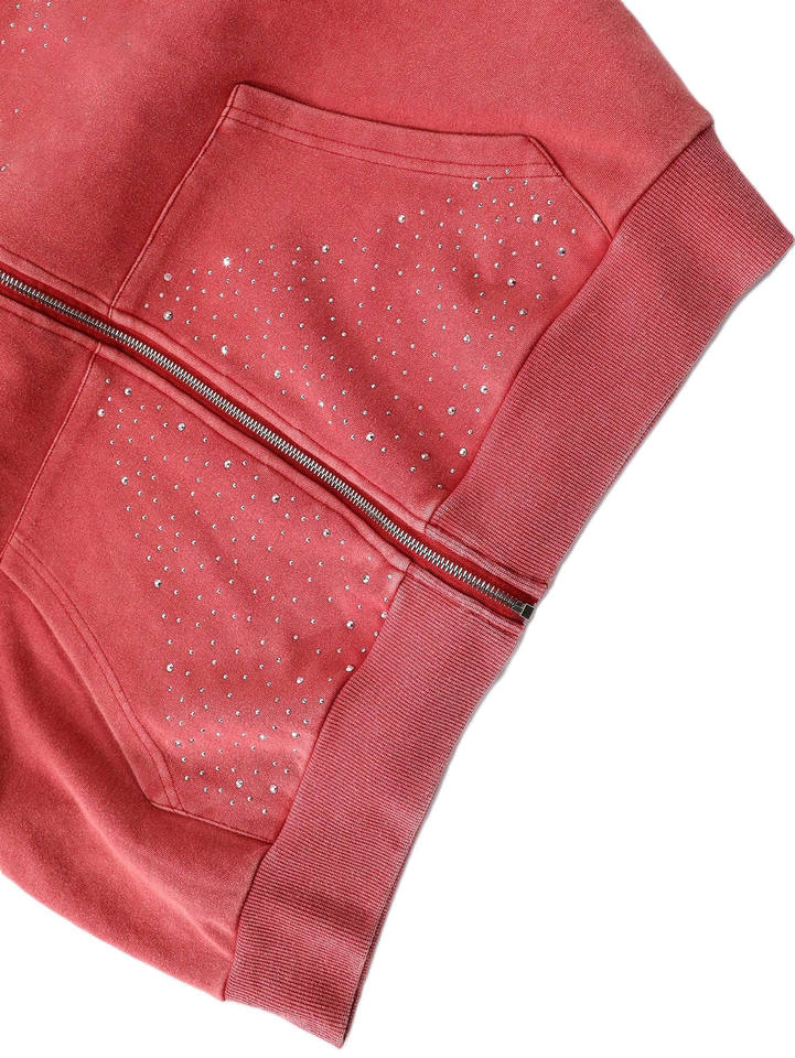 Sweat à capuche zippé personnalisé avec strass, en molleton épais, coupe oversize, style Y2K, streetwear scintillant pour homme - Fournisseur en gros