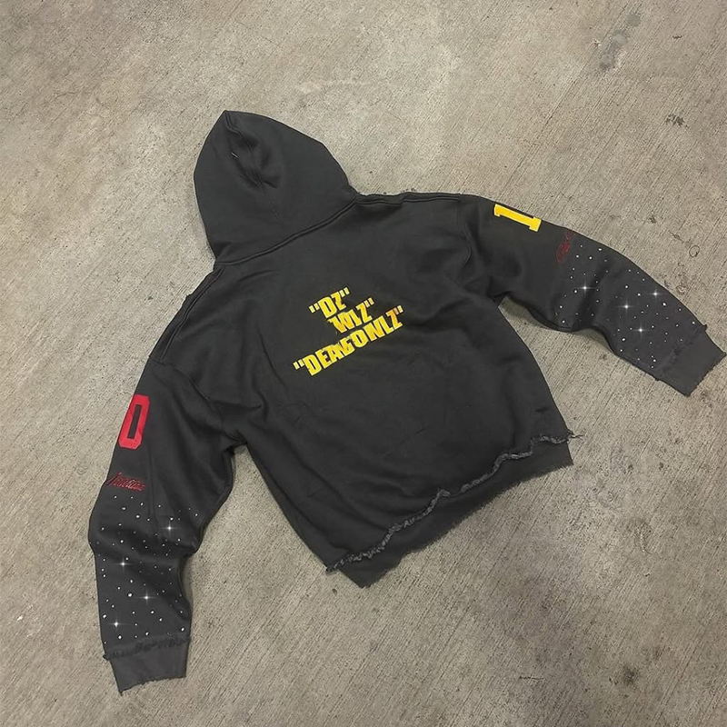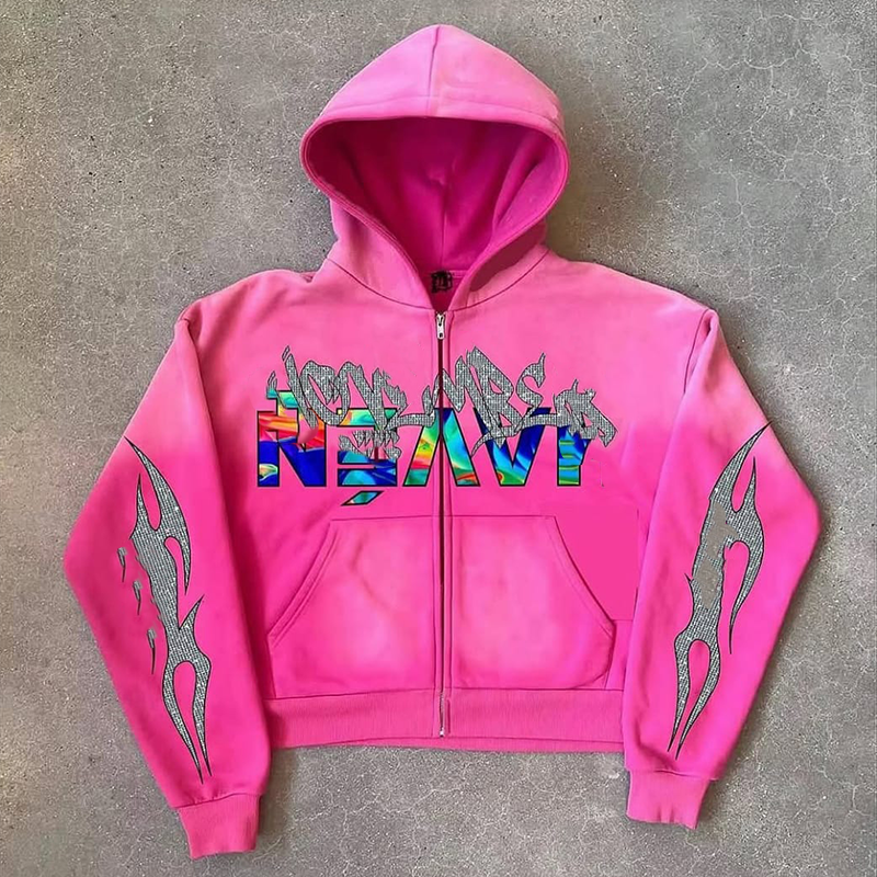 Sweat à capuche zippé personnalisé avec strass 400gsm Sweats à capuche graphiques pour hommes Pantalon de survêtement unisexe à capuche rose avec strass Fabricant