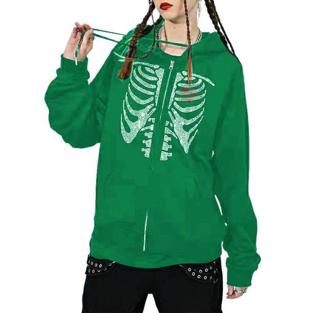 Custom Rhinestones Skeleton Hoodies Women's Zip up Oversized Hoodies Sweatshirts Custom Logo Streetwear Hoodies