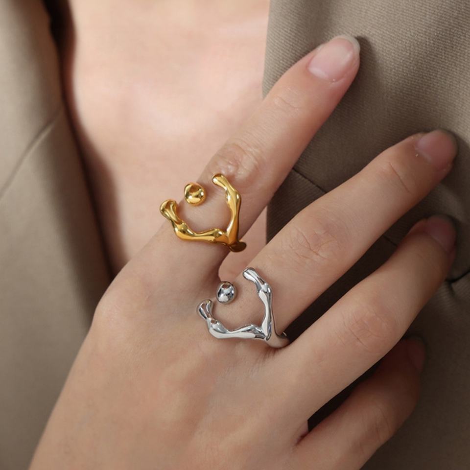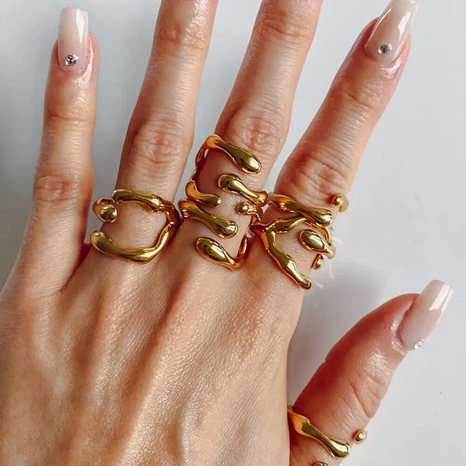 Vente en gros de bijoux bagues personnalisées en acier inoxydable plaqué or 18 carats bagues pour femmes bijoux tendances et étanches bague ouverte géométrique