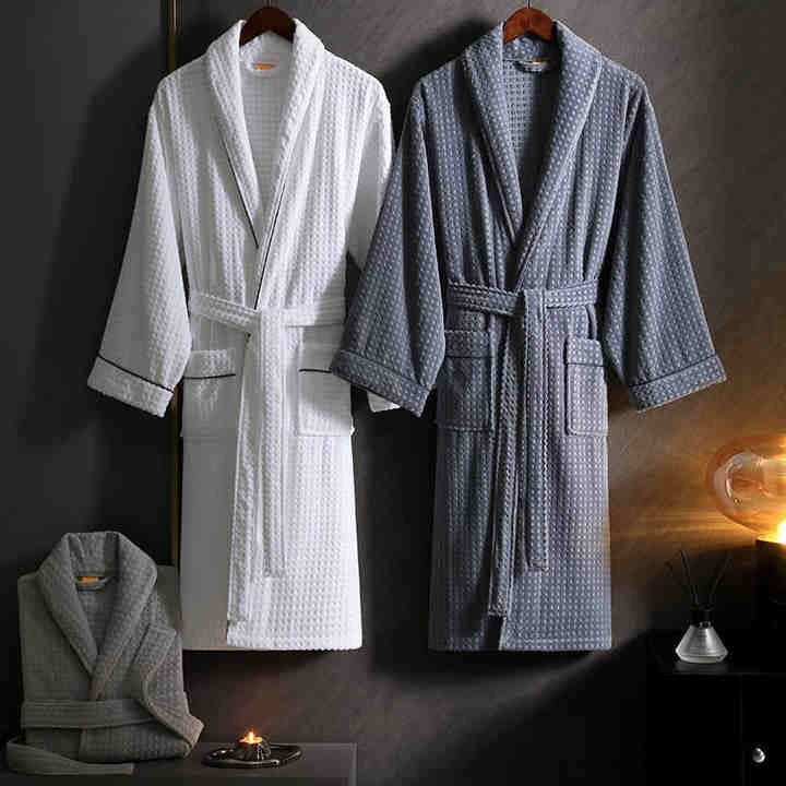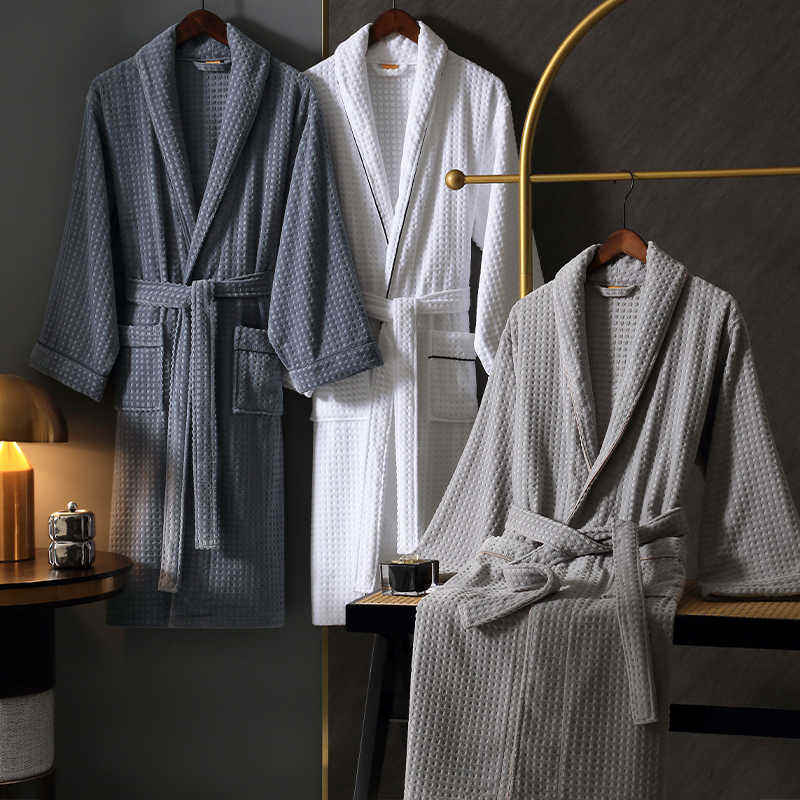 Peignoirs personnalisés avec logo Peignoir de qualité supérieure en nid d'abeille pour femmes Peignoir d'hôtel en coton avec logo brodé à poils coupés