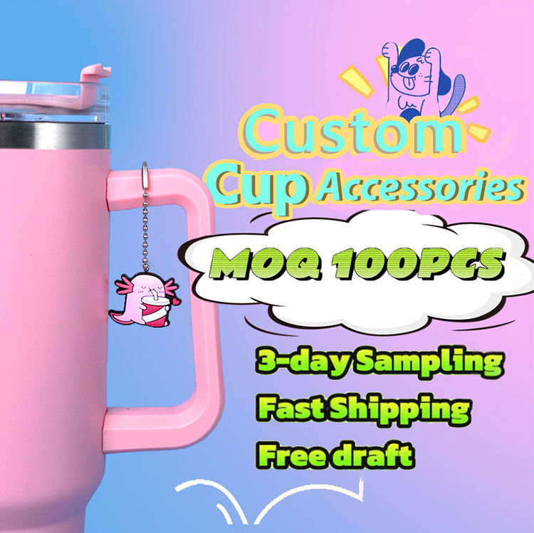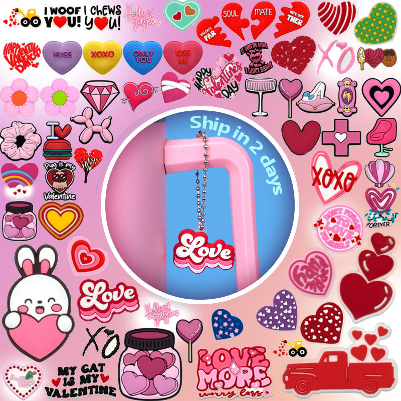 Custom Romantic Heart Cup Chains Valentines Gift Love Theme Cup Necklace Pink Charms Pendants for Couple Tumblers Water Bottles