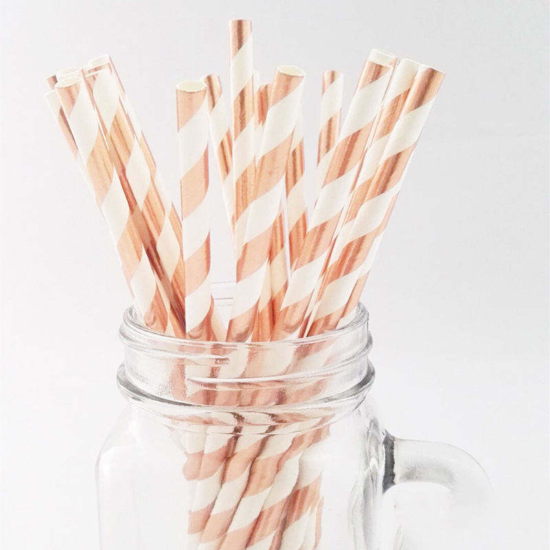 Assiette en papier à rayures irrégulières or rose personnalisé gobelet en papier essuie-tout pailles ensemble de vaisselle de fête jetable pour fête d'anniversaire