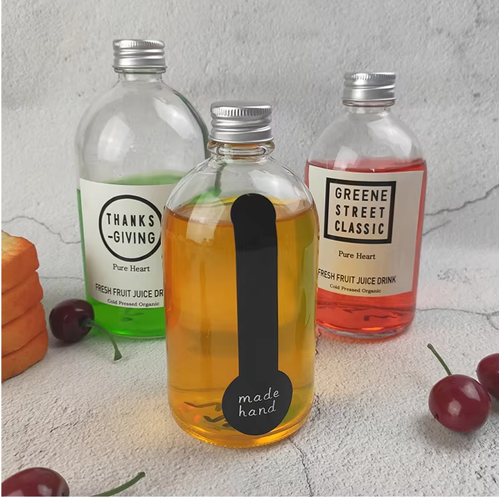 Personnalisé Rond 50ml Petit Bec Bouteille En Verre Transparent Bouteille De Sel De Bain De Lait Bouteille De Jus De Boisson Bouteille En Verre De Saumure Avec Couvercle En Aluminium