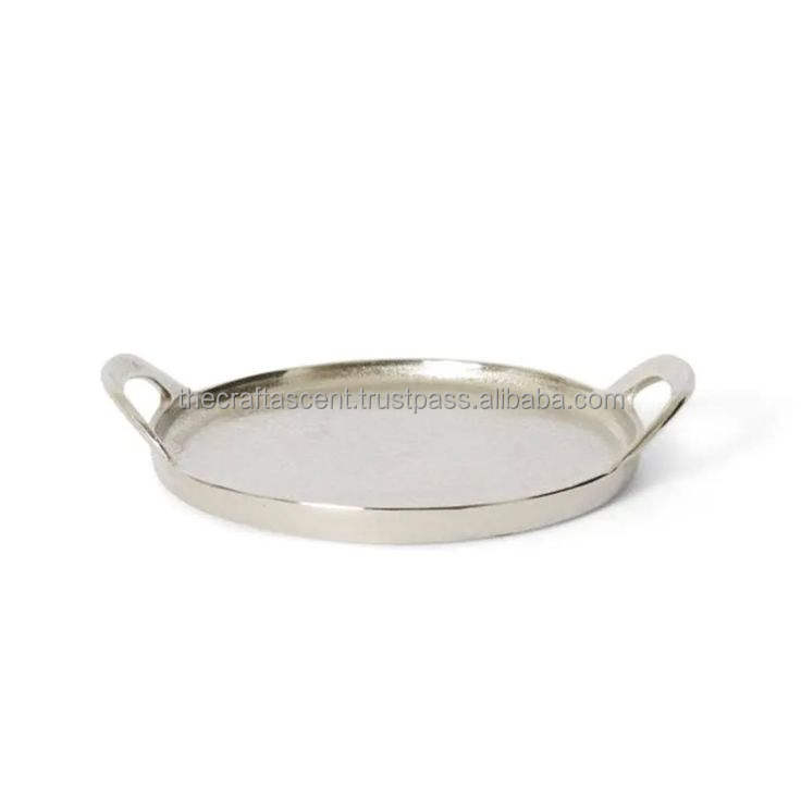 Plateau de service rond en aluminium personnalisé avec finition encaustique, de qualité supérieure, compatible micro-ondes, pour hôtels et restaurants