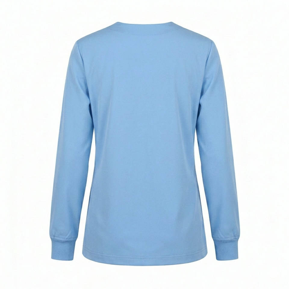Blouse médicale personnalisée à col rond, boutonnage frontal à pression, manches longues, pour infirmières et médecins, prix de gros