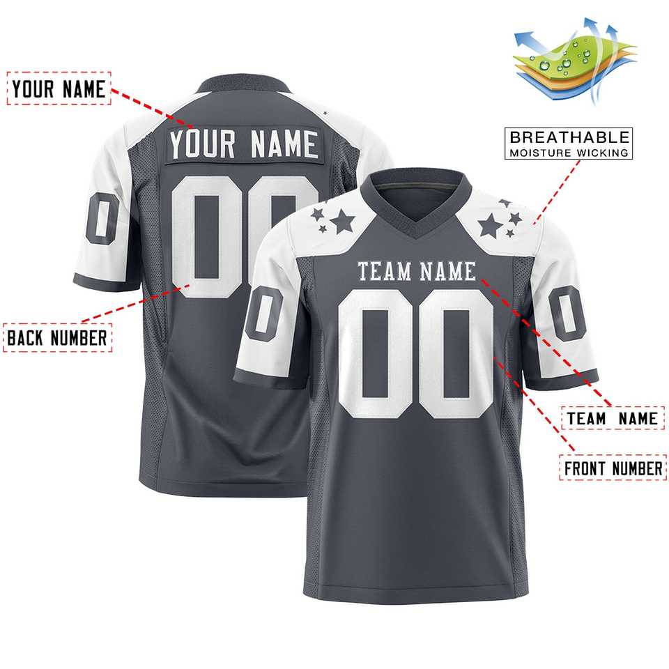 Maillot de football américain personnalisé blanc royal avec motif étoile sur l'épaule