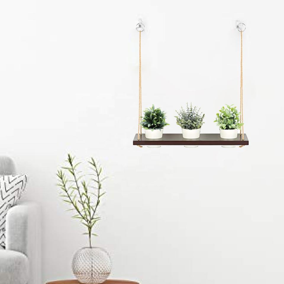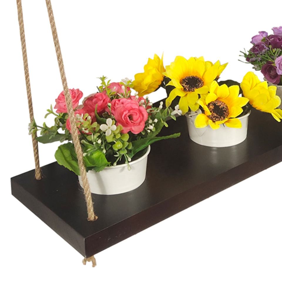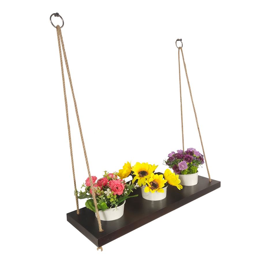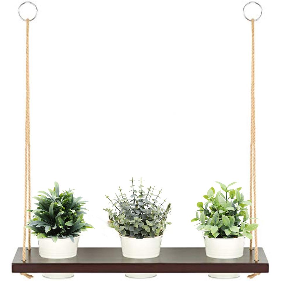 Étagère murale en bois rustique personnalisée avec corde en macramé conception flottante pour les plantes, les livres et la décoration de la maison