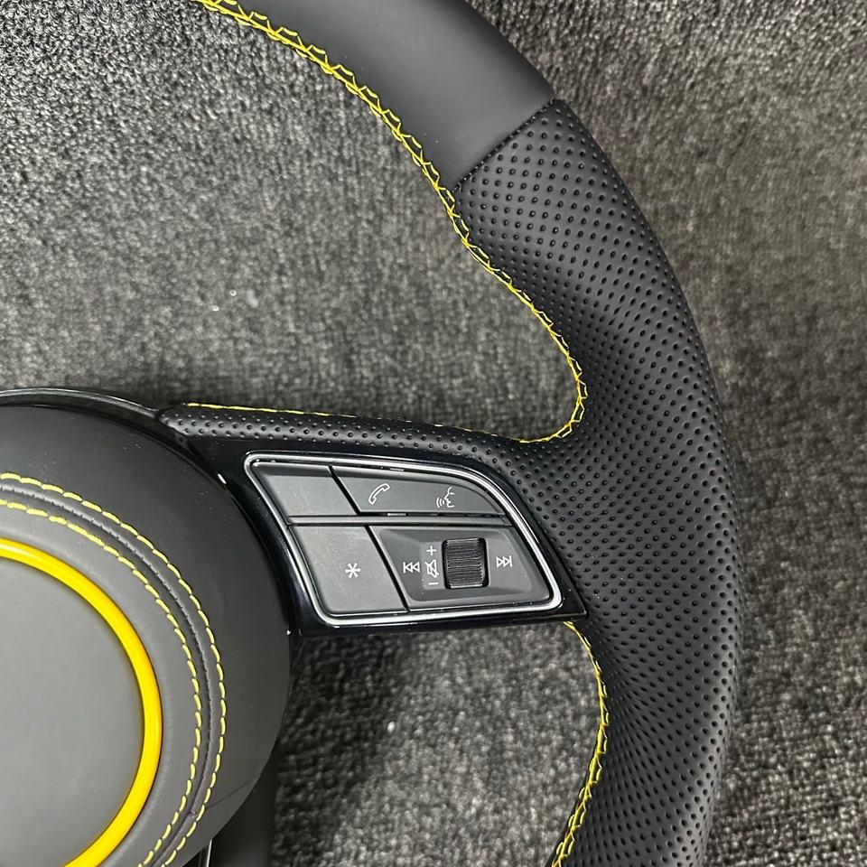 Volant en cuir perforé personnalisé avec bande jaune S Line pour Audi, modèles anciens et nouveaux A8 A1 RS5 A3 TT A7 Q7 Q5 RS4