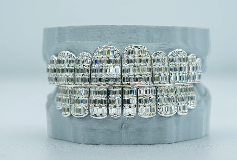 Dents personnalisées en argent étoilé S925 Grillz de diamant de Moissanite glacé pour les dents Grillz de diamant de Moissanite taille émeraude