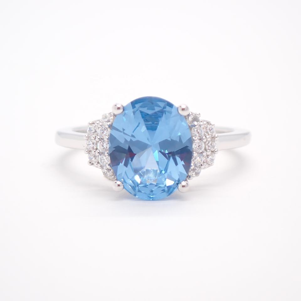 Bague Cocktail Classique et Tendance pour Femme en Argent Sterling S925 Plaqué Rhodium avec Zircon Créé en Laboratoire de 10 mm et Placage 4 Couches