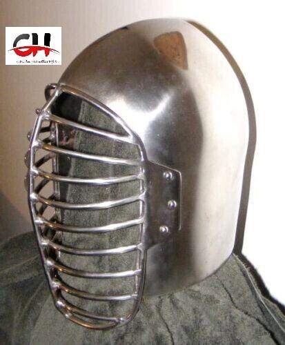 Casque de bascinet médiéval en acier de calibre 18 SCA HNB personnalisé avec visière de barre.
