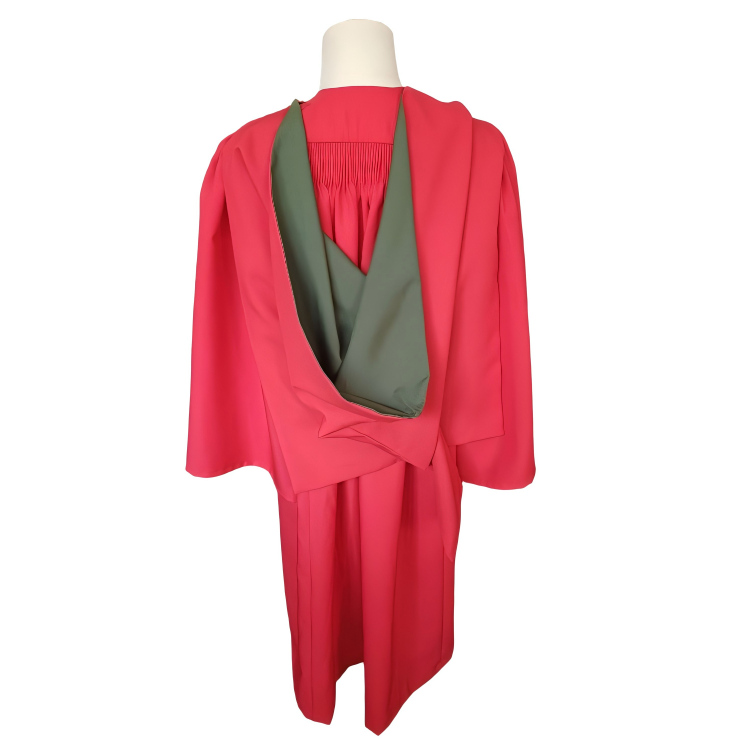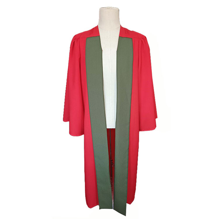 Robe de graduation personnalisée SHE GOWN HOOD matte de luxe cannelée UK PHD rouge avec manches longues et extrémité fermée