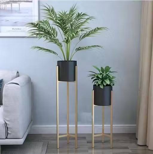 Support de pot en métal personnalisé avec pot noir, design artisanal durable pour pots lourds et décoration intérieure élégante