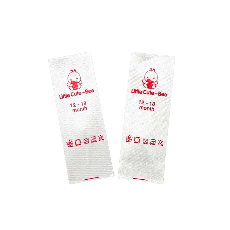 Etiquette en satin personnalisée pour vêtements de luxe, finition brillante et rouleau souple pour la marque, instructions de lavage