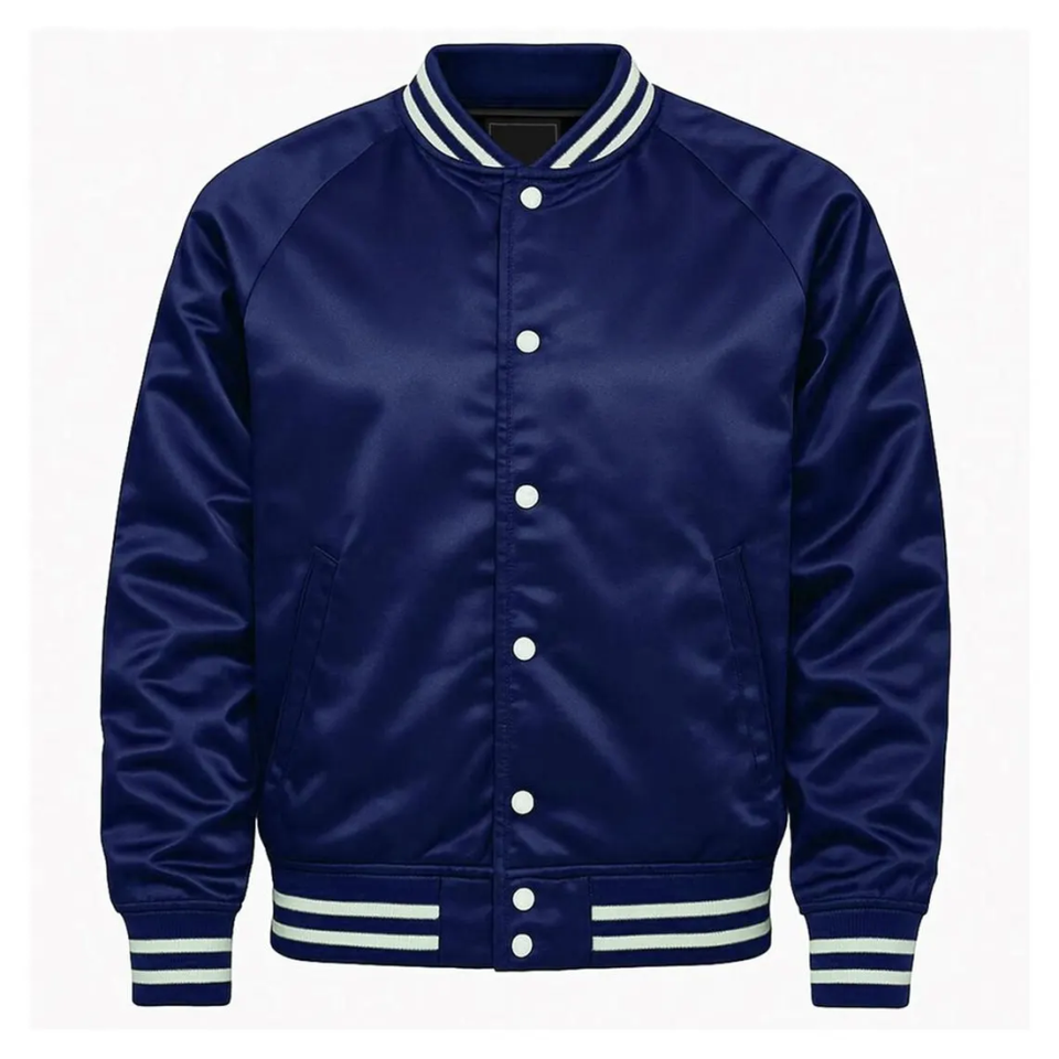 Veste universitaire en satin personnalisée : Bomber personnalisé, style Letterman, col rond, fermeture éclair, taille standard, manches longues
