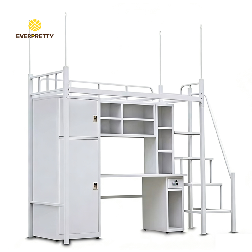 Meubles de dortoir scolaire sur mesure, design moderne, lit superposé en métal avec bureau, bibliothèque et échelle pour auberge de jeunesse