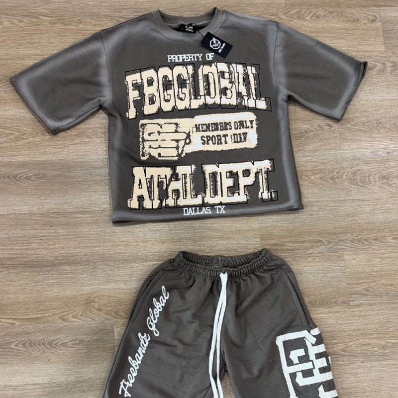 T-shirt et short d'été pour homme, coupe ample, épaules tombantes, gris délavé, style vintage, 100 % coton, impression personnalisée