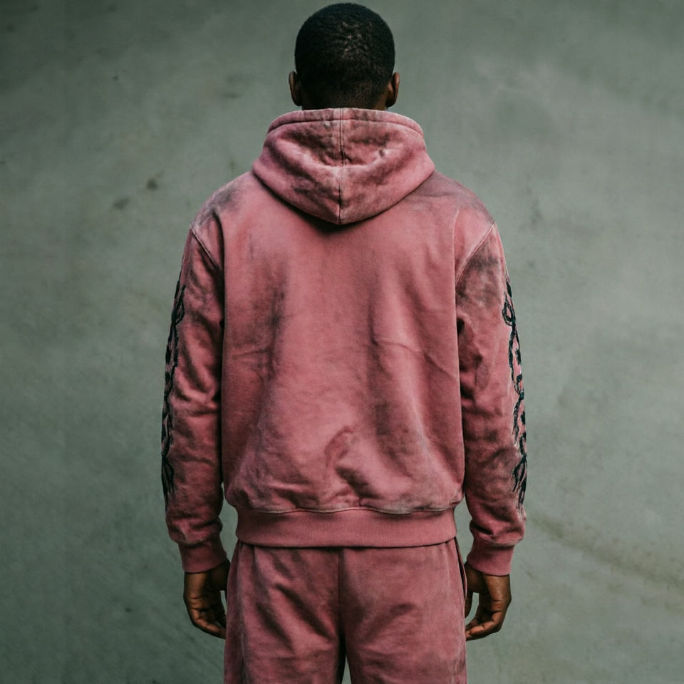 Ensemble de sweats à capuche personnalisés avec logo sérigraphié, en molleton 100 % coton, délavé à l'acide, effet vieilli, avec strass, pour homme, style streetwear