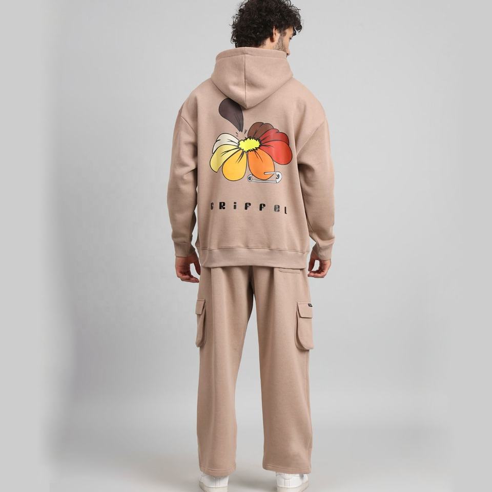 Ensemble de jogging de rue pour hommes sérigraphié personnalisé Survêtement durable 100% coton avec sweat à capuche et pantalon de survêtement