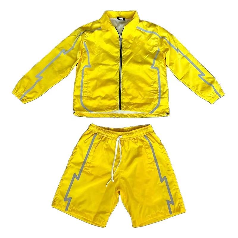 Veste à capuche zippée personnalisée avec impression sur écran, ensemble court en nylon imperméable deux pièces, streetwear, coupe-vent, survêtement pour homme