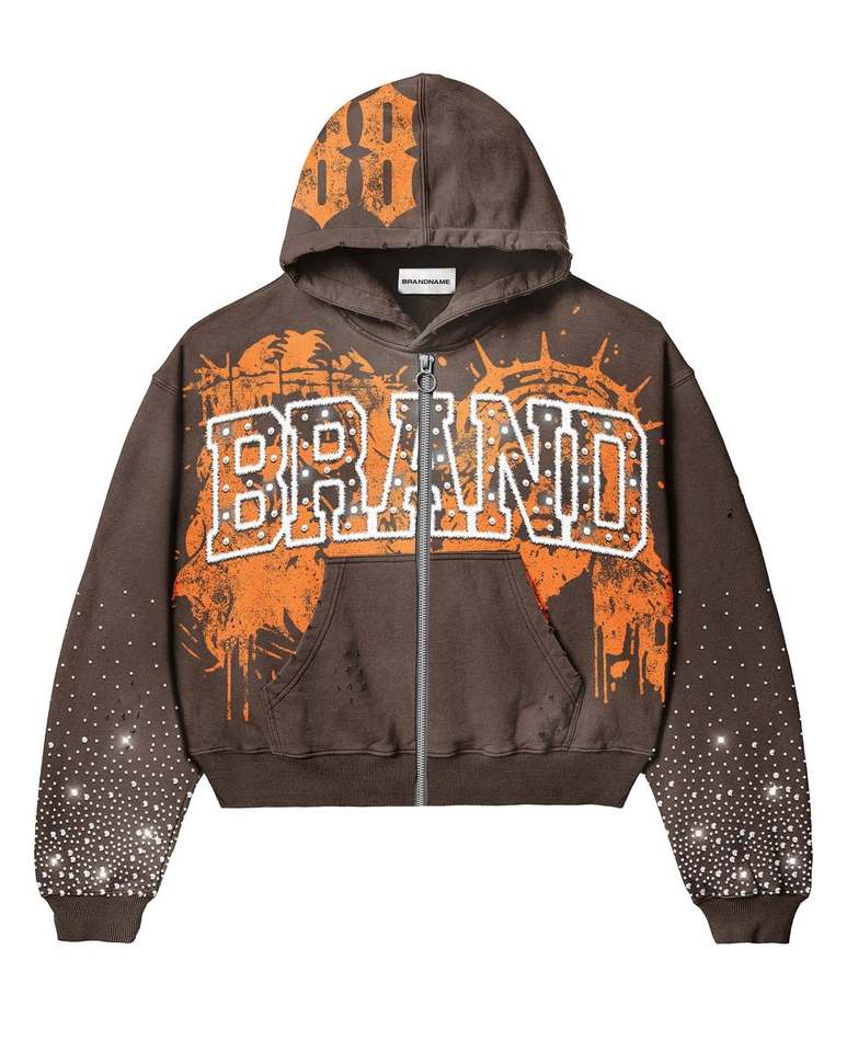 Ensemble de survêtement pour homme avec sweat à capuche à fermeture éclair et manches en strass imprimées sur mesure, coupe ajustée, ourlet élastique