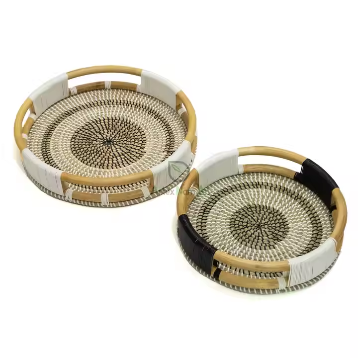 Plateau de service personnalisé en rotin jonc de mer pour la maison élégance classique pour le stockage des aliments et le service à thé et café