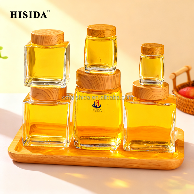 Pot à miel personnalisable et scellable, personnalisé, 180 ml, 360 ml, 380 ml, 750 ml, pot à miel transparent, 500 g, bouteille en verre carrée vide, 100 ml, bouteille en verre pour miel