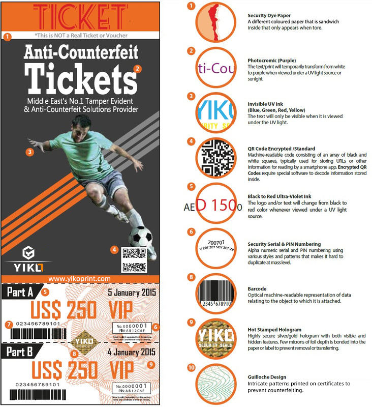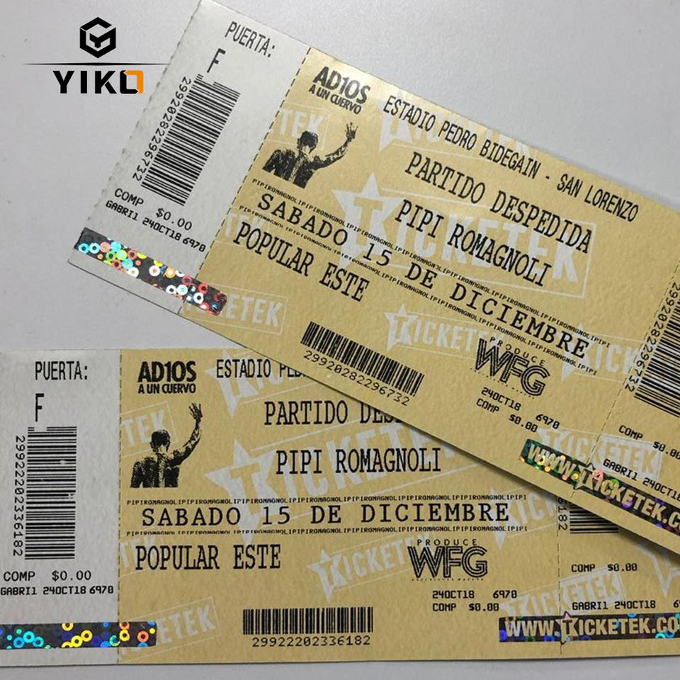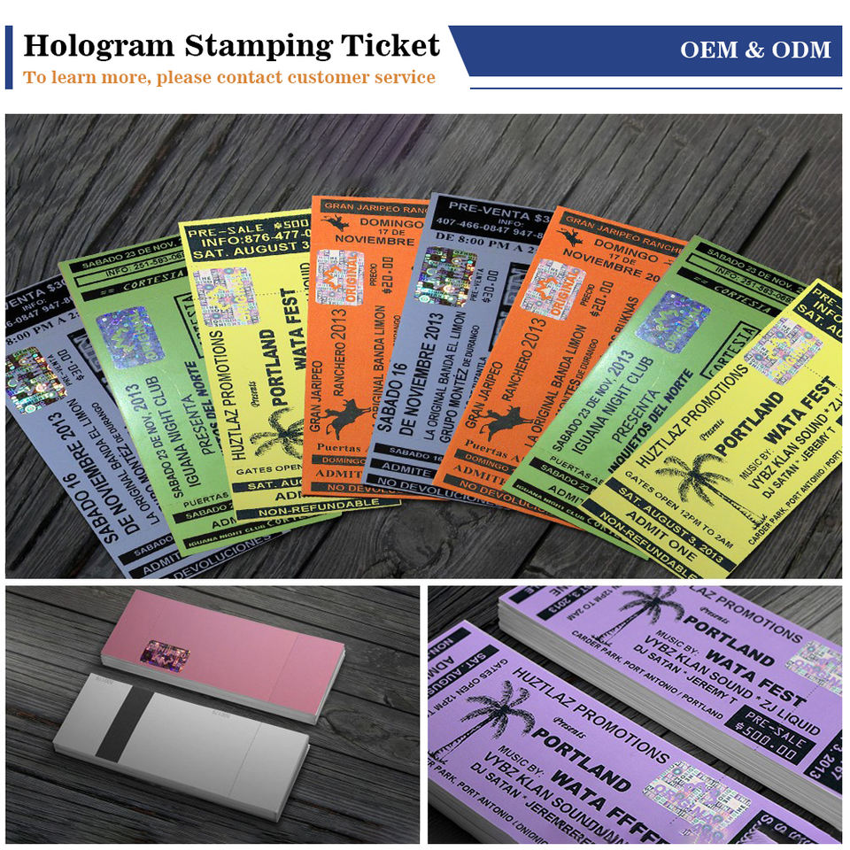 Impression de billets d'événements sécurisés personnalisés, billets d'entrée, bons d'admission avec hologrammes de sécurité, logo pour les événements, vérifiés