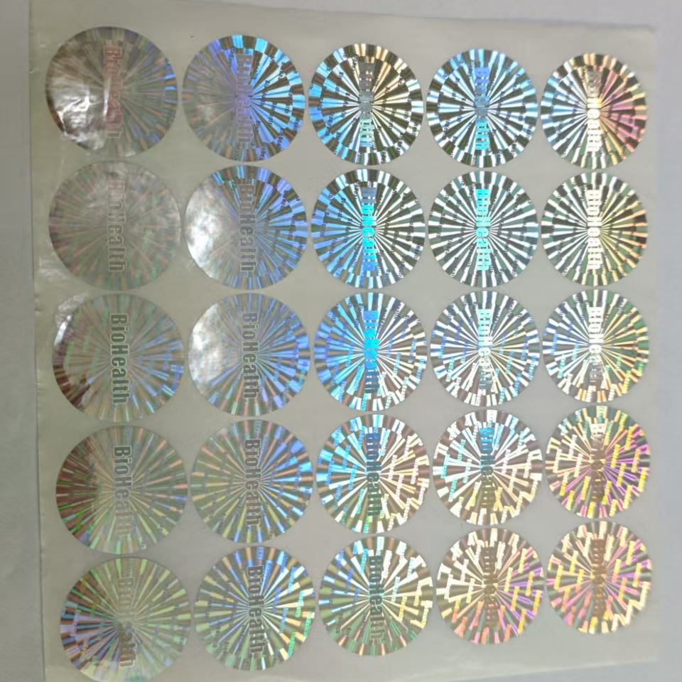 Feuille d'étiquettes autocollantes en vinyle holographique imperméable personnalisées, autocollants décoratifs pour la promotion du logo de la marque