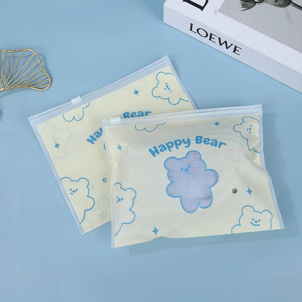 Sac auto-scellant personnalisé, design simple, mignon, pour emballage de sous-vêtements, sac transparent en PE avec fermeture éclair, sac de rangement pour maillot de bain, bonnet, masque